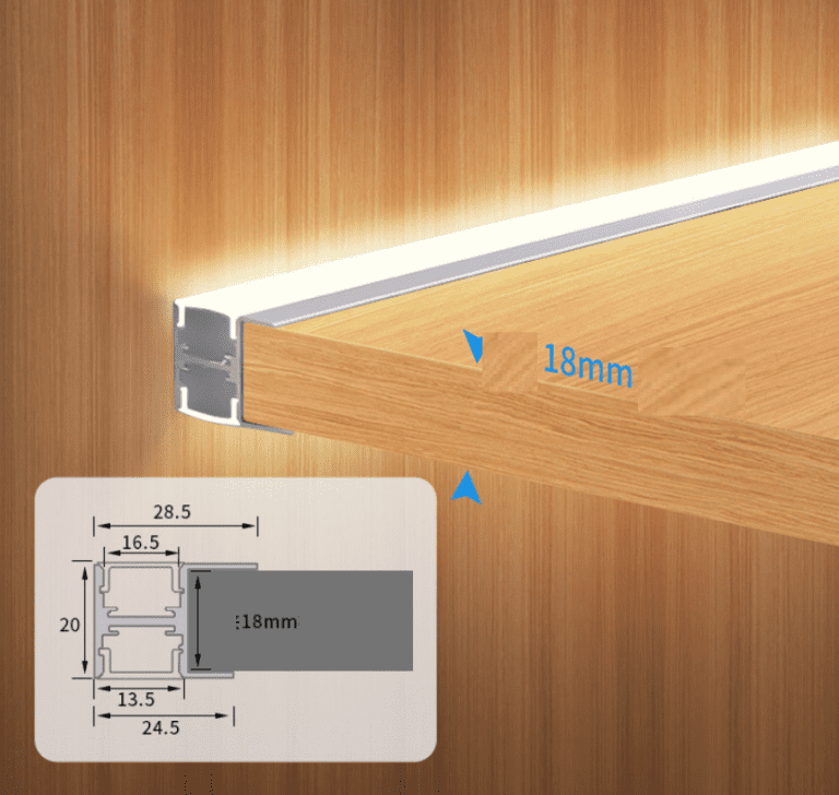 Đèn LED kẹp kệ gỗ BTC-LW300/1500 có công suất 20W/1m. Dây led có thể cắt tùy chỉnh theo kích thước đợt tủ.