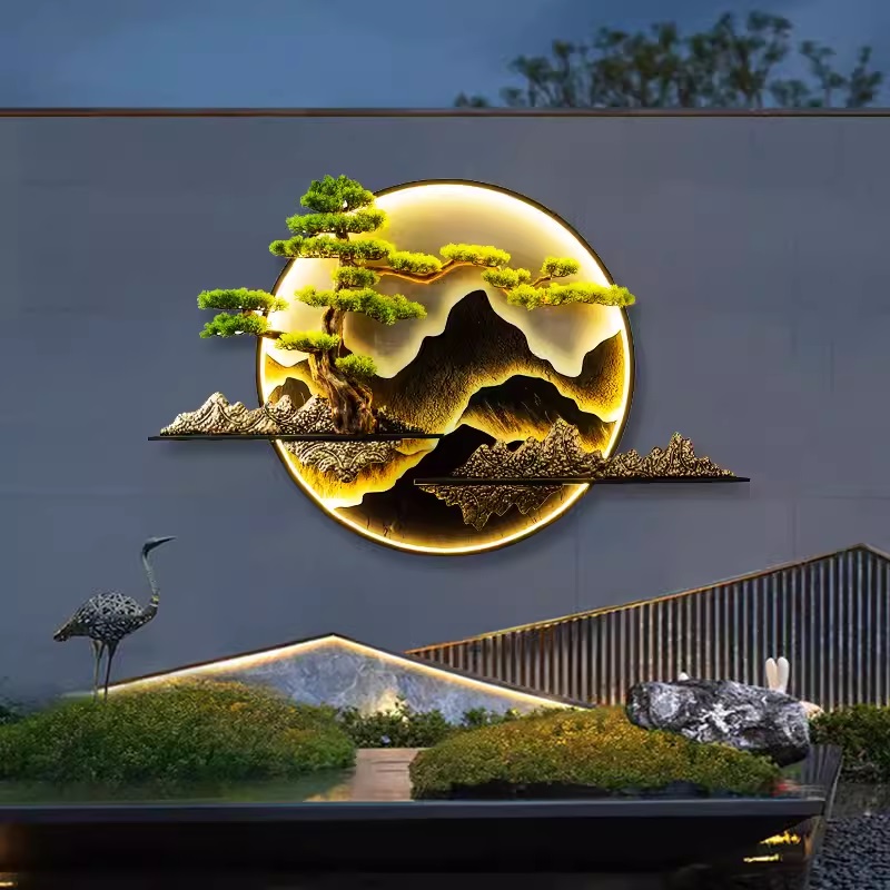 Giới thiệu Đèn tường hình tròn phối tiểu cảnh hòn non bộ SL0608